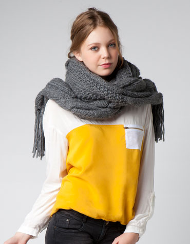 Stradivarius, 15.95€. Sólo disponible en este color. Es un "cuello", las puntas están unidos, por lo que te lo puedes poner dándole doble vuelta, o incluso dando doble vuelta y dejando una de las capas tapando la cebza y orejas.